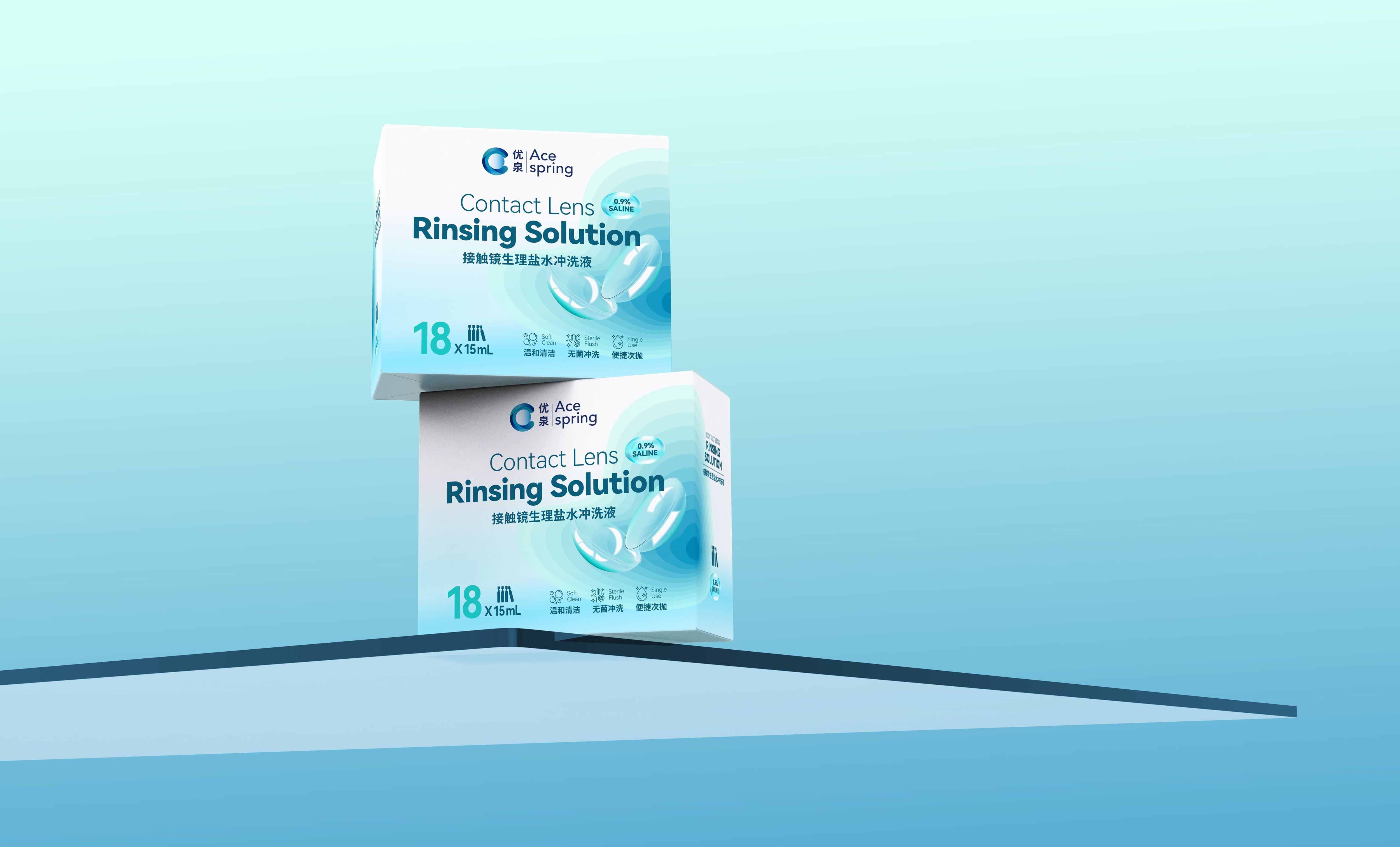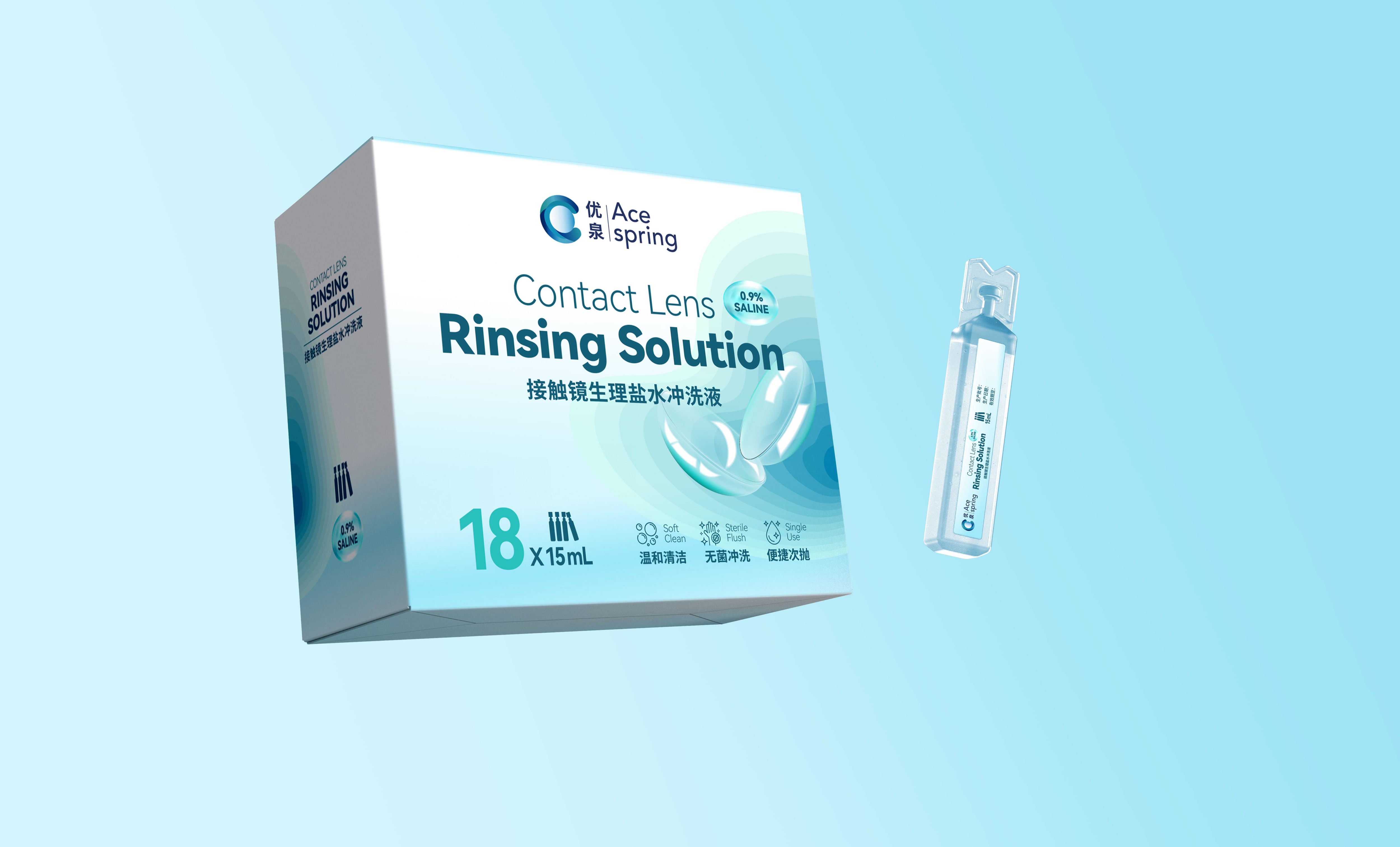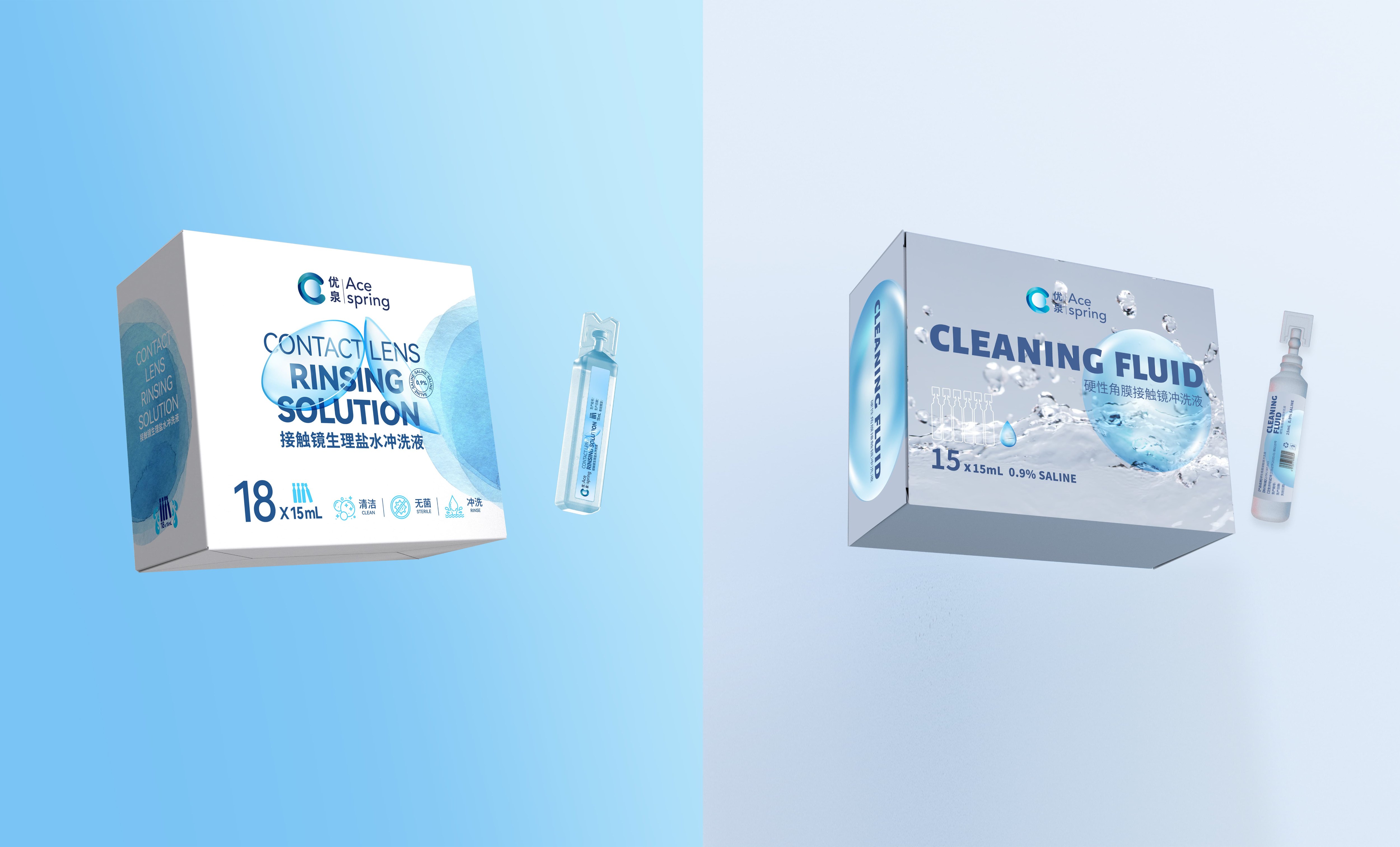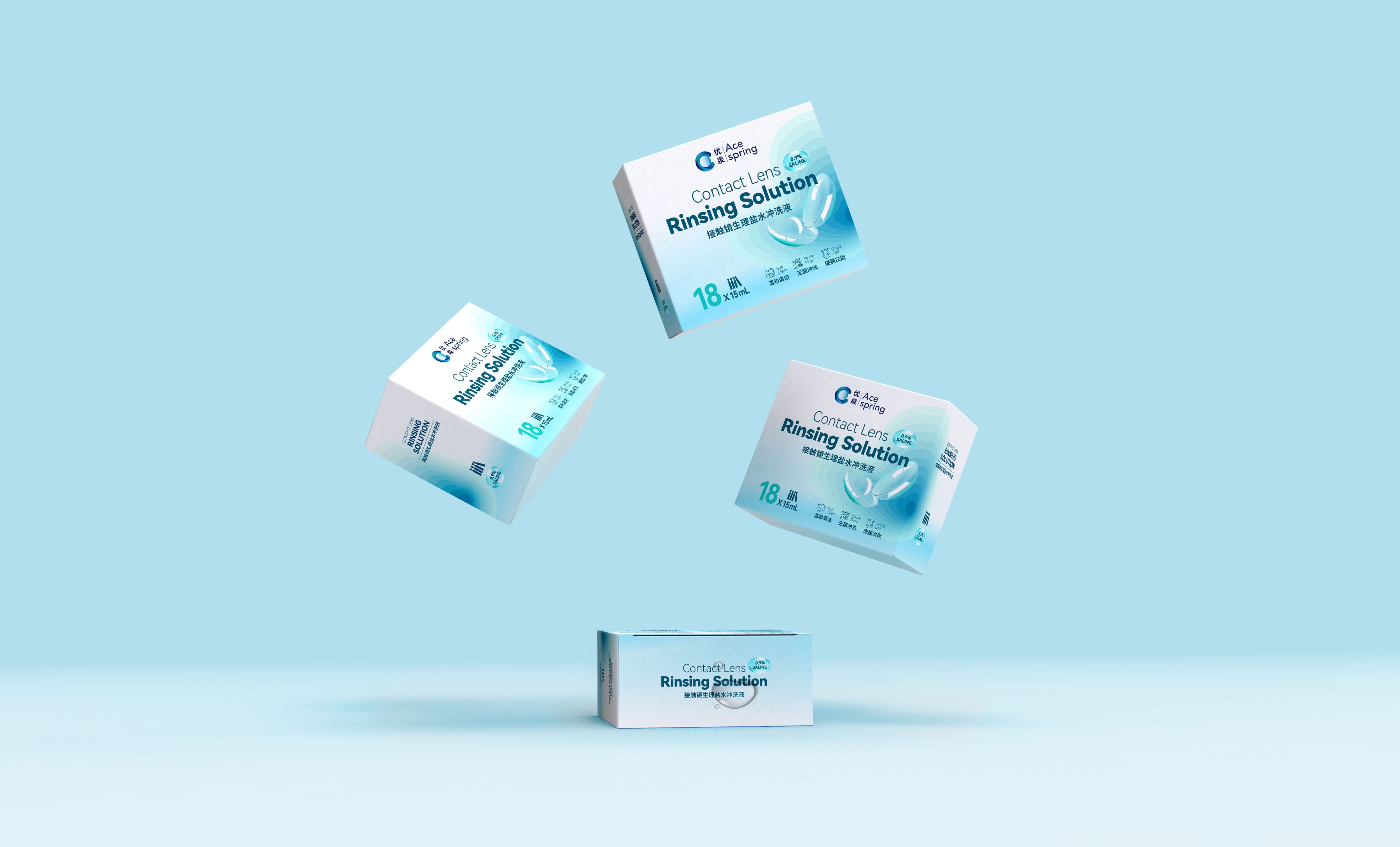 优泉接触镜冲洗液包装设计:以“水感轻盈”锚定医学级眼部护理的温和专业