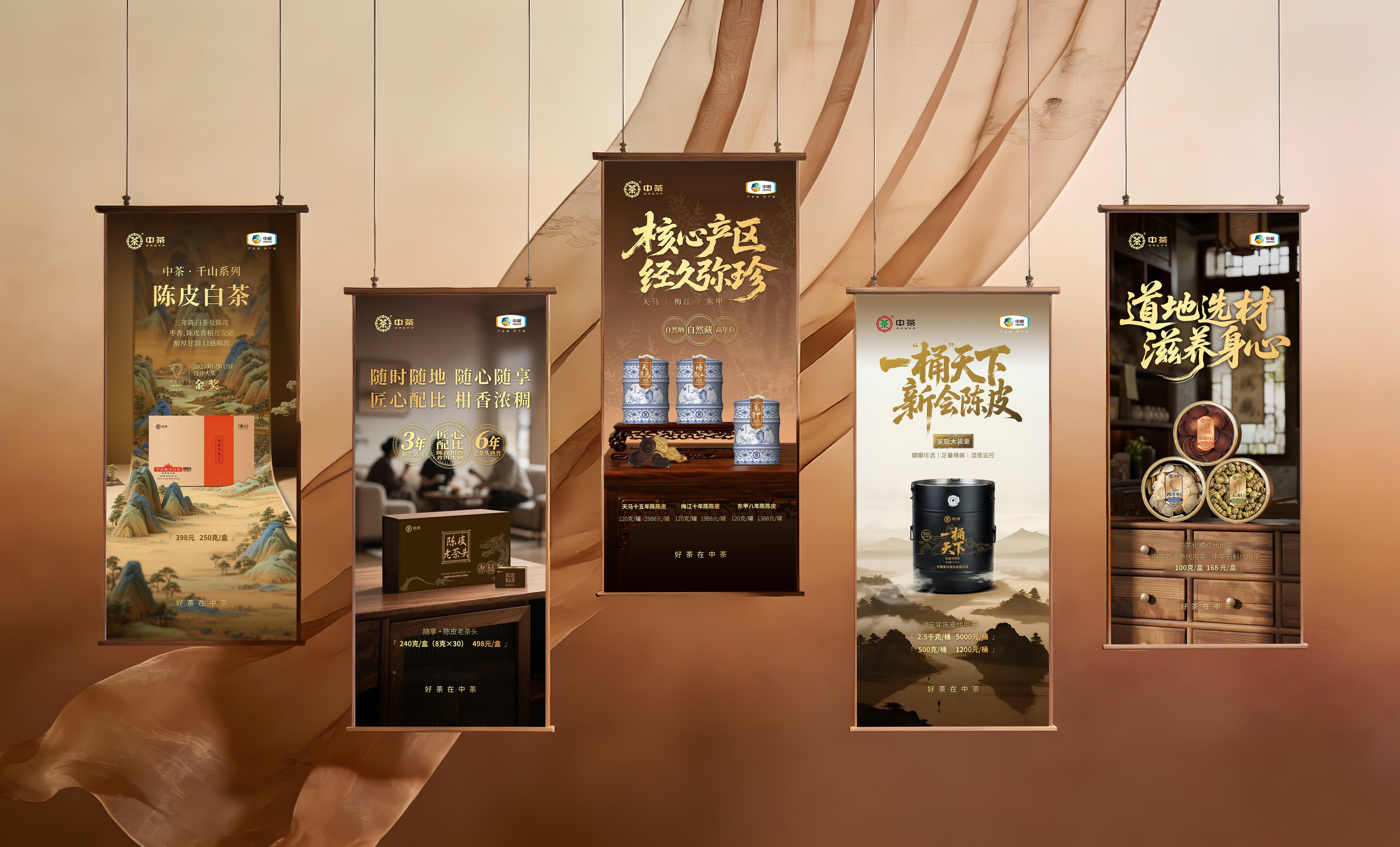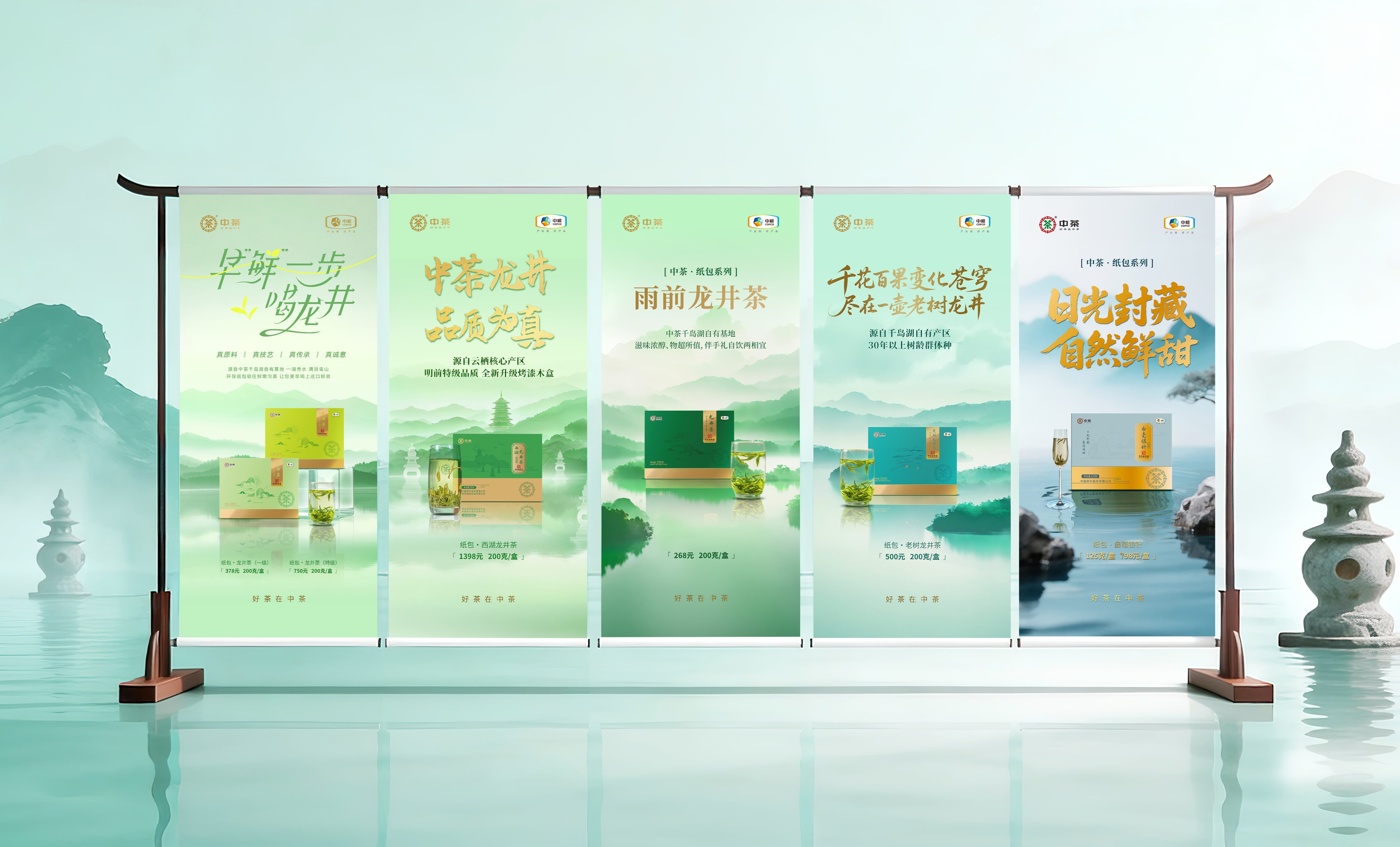 作为中茶全年产品视觉营销方案的打造者,我们以“一线品牌质感对标 + 国茶基因差异化表达”为核心,构建兼具市场竞争力与品牌辨识度的视觉体系。对标八马的经典商务设计、小罐茶的现代快消视觉,我们既汲取两大品牌在色彩聚焦、版式规整上的设计精髓,又深挖中茶“国茶底蕴 + 全品类布局”的核心优势,实现风格同频而价值独树。